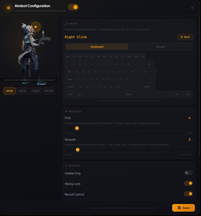offers configurable aimbot, ESP visuals, and performance-friendly options tailored for competitive players. Designed for stability on Windows 10/11, it uses lightweight overlays and smart checks (team, downed, NPC, visibility) to keep gameplay smooth and responsive.